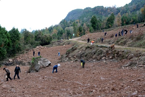 来到回林乡灵山村1000亩耳林改造示范园,看到当地群众正在热火朝天地播种橡子(青冈树种子),王军十分高兴。他径直走进地里,在技术人员的指导下,饶有兴趣地跟大家一块儿播种,并与乡、村负责人亲切交流,全面了解该乡耳林资源、种耳历史、群众发展产业愿望等情况。