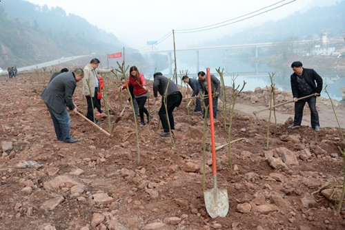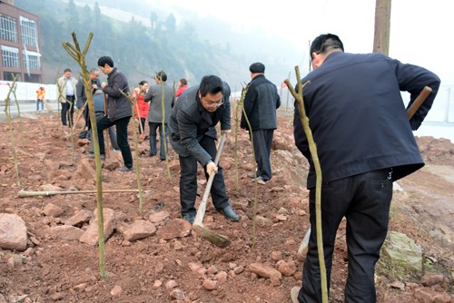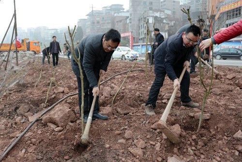 植树现场,参加义务植树的干部群众热情高涨,配合默契。有的挥锄培土,有的俯身为树苗浇水,有的一边劳动一边同大家交流加强生态建设和环境保护的看法。经过一番紧张的劳动,大家共植下1000余株新苗。