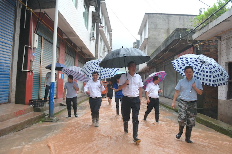7月10日,县委副书记、县长谭青松到广纳、陈河、涪阳、新场、青峪、板桥口等地,检查灾情,督导防汛减灾工作。他强调,要牢固树立“生命至上、安全第一”的理念,打起十二分精神,压实各方责任,全力以赴做好防汛减灾各项工作,确保人民群众生命财产安全。