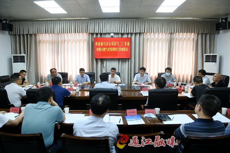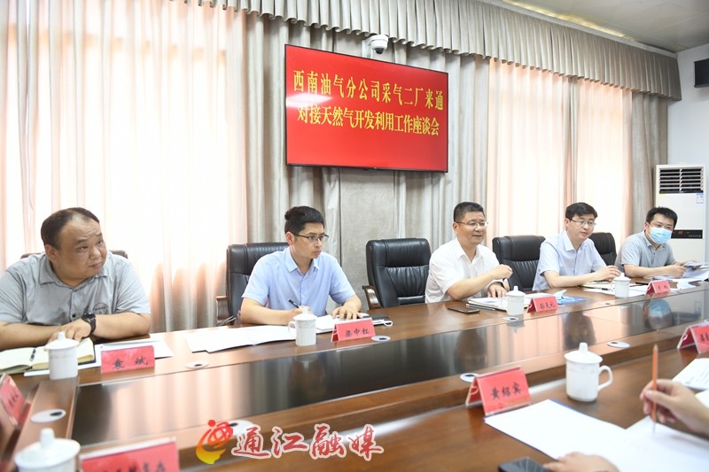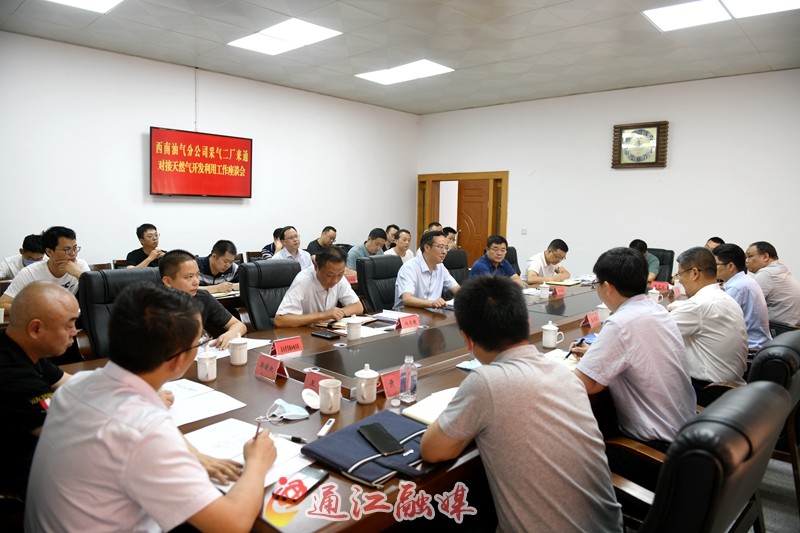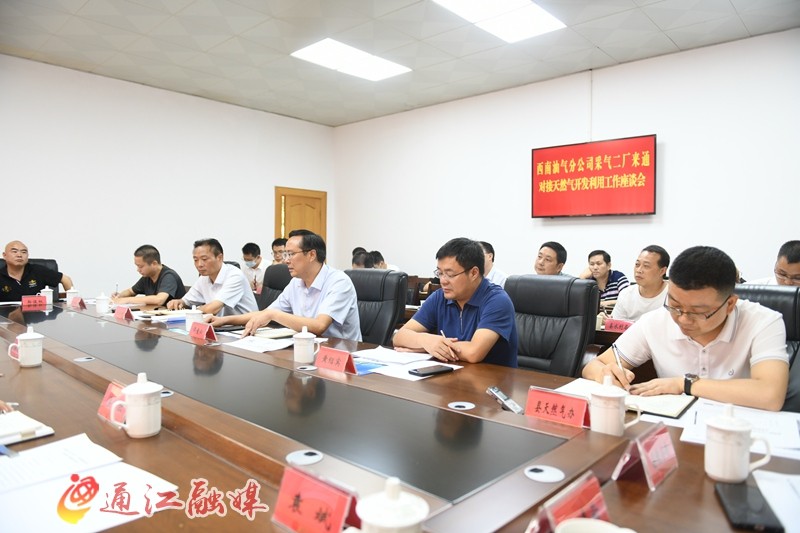 8月3日,中石化西南油气分公司采气二厂厂长孙天礼带队来到我县,对接天然气开发利用工作,副厂长青鹏、梁中红参加。县委副书记、县长谭青松出席座谈交流会。