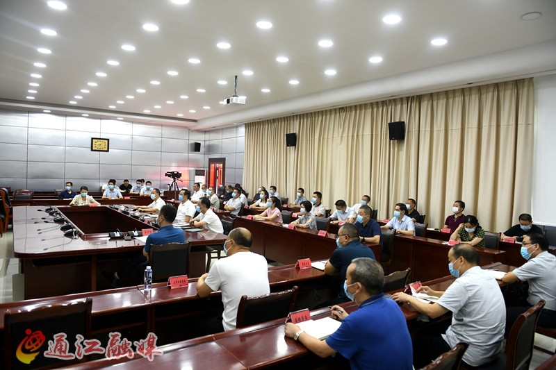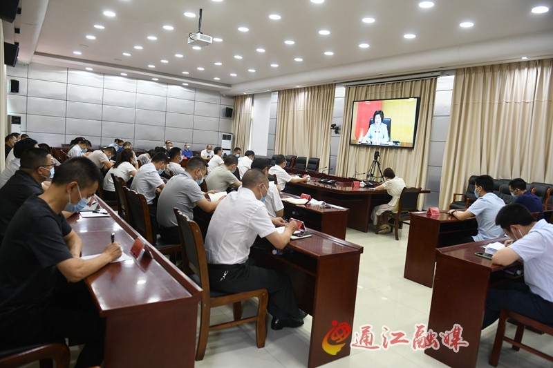 8月4日,全国疫情防控工作电视电话会议召开。县委副书记、县长谭青松在通江分会场参加会议。