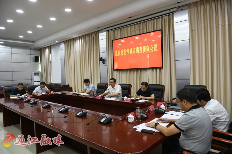 9月1日,我县召开防汛减灾调度视频会,县委副书记、县长谭青松主持会议并讲话。县人大常委会主任吴天泉、县委副书记孙江出席会议。