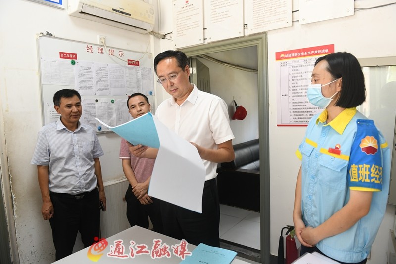 在王家湾加油站,谭青松仔细检查安全生产主体责任落实、安全消防设施运行和日常管理维护等情况。他要求,要严格落实安全生产主体责任,加强员工安全能力培训和应急预案演练,提升员工应急处置能力,常态化开展安全隐患排查整治,坚守安全生产“底线”。