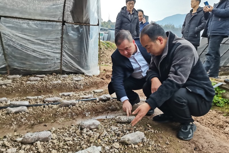 2月12日,副县长熊纯俊到新场、陈河等地专题调研羊肚菌产业发展工作。