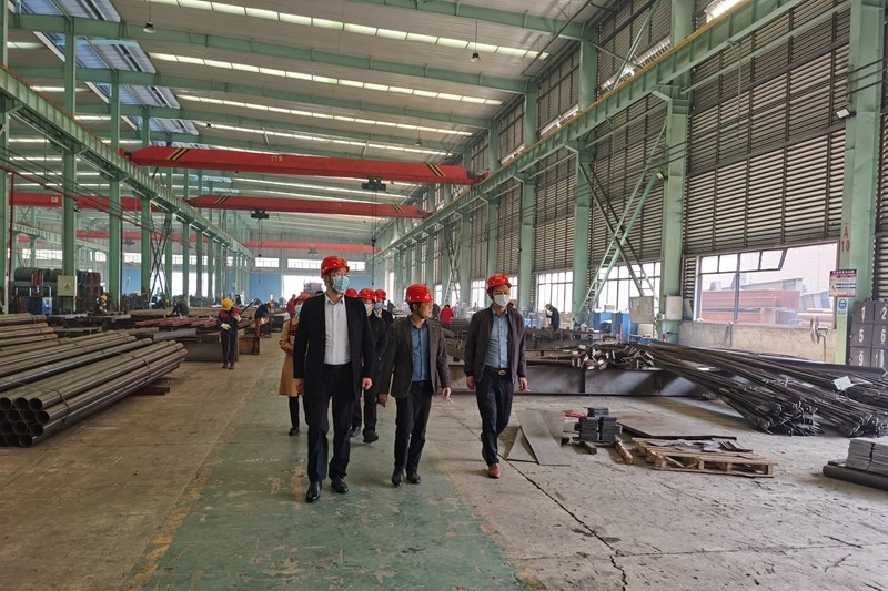 广西壮族自治区某钢结构有限公司主要制造高层装配式建筑材料,谭青松一行参观了公司钢结构加工生产线、全自动压型钢板生产线、楼层板生产线、管桁架生产线等多条装配式产品生产线,与企业负责人现场交流,介绍通江地理位置条件、分析了产品市场,希望公司能赴通投资,在通江建立装配式建筑材料生产基地。