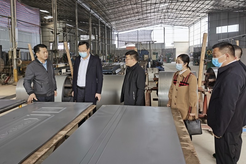 广西壮族自治区某新材料科技有限公司采用目前世界最先进的生产技术和生产设备,生产环保门和环保装修材料,主要面向两广地区市场。为进一步拓展内地市场,公司计划在内地重新布点建厂或整体搬迁。来到该公司,谭青松一行参观了生产车间、产品展示厅、样板间,向企业负责人推介了通江县的营商环境情况,分析了投资通江的优势条件和优越时机,并邀请他们来通实地考察洽谈。
