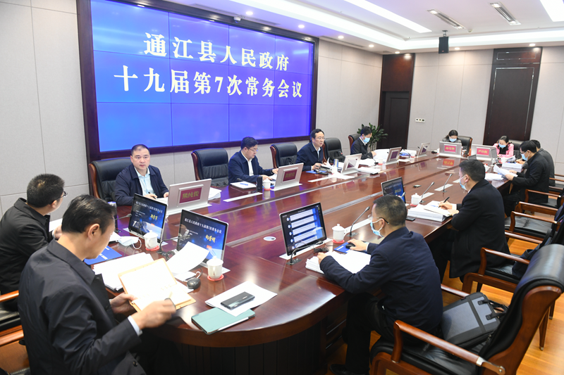 4月1日,县委副书记、县长谭青松主持召开县政府十九届第七次常务会议,传达学习有关会议文件精神,审议相关议题。