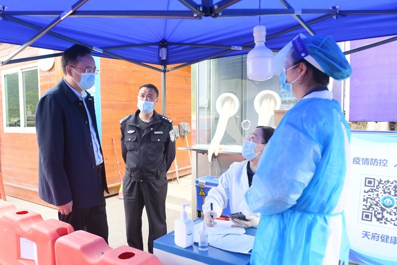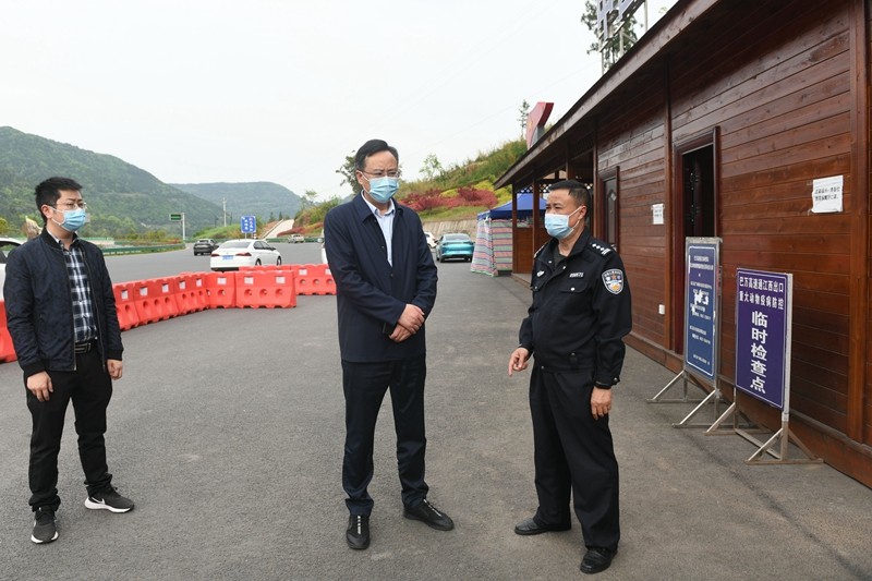 谭青松仔细检查了巴万高速通江出口待检区测温亮码措施落实、中高风险地区来通返通人员核酸检测情况。他指出,清明假期,来通返通人流物流多,疫情输入风险大,防疫措施一定要严之又严、实之又实、细之又细。要严格细致地做好近期外来及返乡人员的排查检测工作,落实好查验行程码、健康码、核酸检测报告,确保“不漏一车、不漏一人”,筑牢“外防输入”的第一道防线。要科学排班轮班,强化物资保障,全面做好一线工作人员的个人防护。