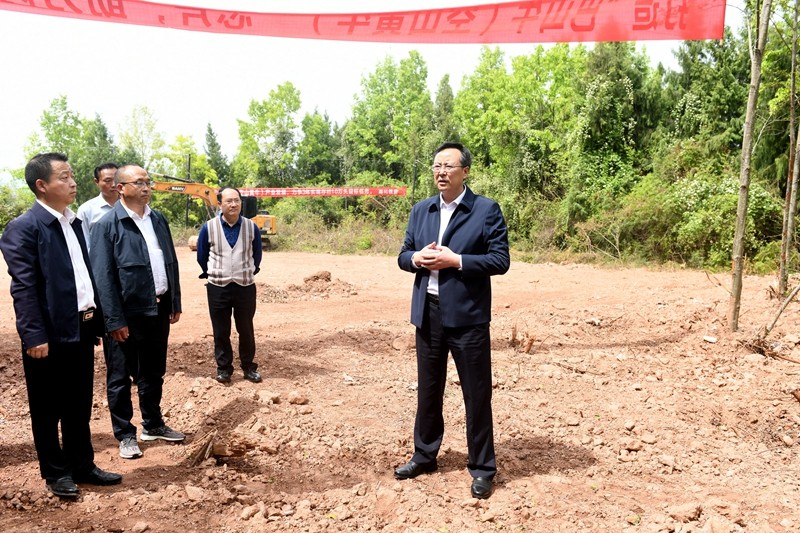 4月8日,县委副书记、县长谭青松到火炬镇玉马村巴山肉牛(空山黄牛)保种场建设项目现场办公,督促项目加快推进。