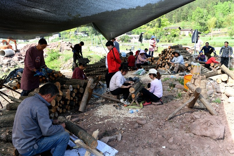 陈河是通江银耳的发祥地,这里出产的银耳品质优良、闻名遐迩。四月的陈河镇,阳光和煦,气候温润。又到了一年一度点菌种的大好时节。山间,成片成片的青杠树茁壮成长;银耳种植基地里,一摞摞耳棒整齐的堆码,耳农们钻孔、接种、堆放,有条不紊的忙碌着。