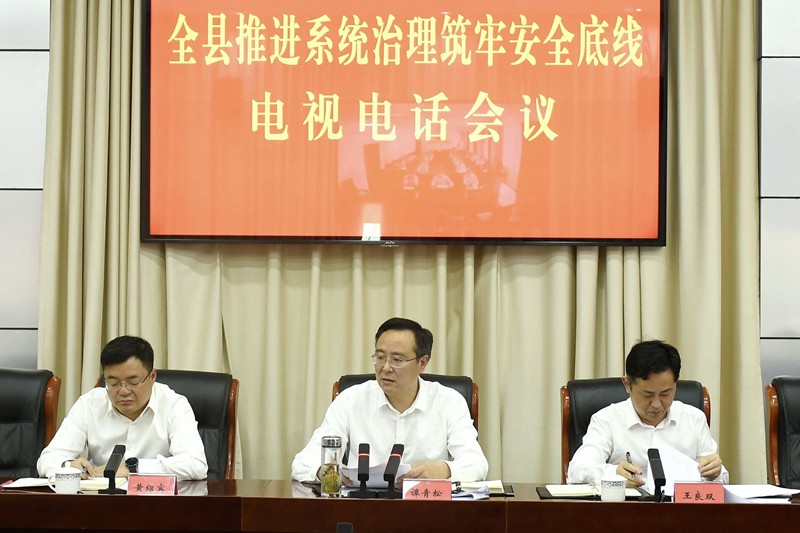 5月22日,全县推进系统治理筑牢安全底线电视电话会议召开,贯彻落实中央、省、市相关会议精神,分析安全形势,安排部署我县工作。县委副书记、县长谭青松主持会议并讲话。