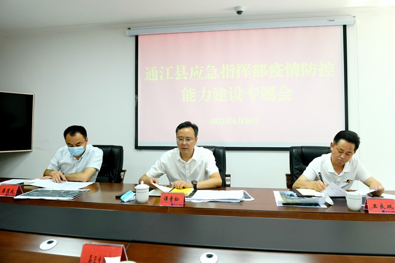 6月20日,县委副书记、县长谭青松主持召开县应急指挥部疫情防控能力建设专题会,贯彻落实市应急指挥部疫情防控能力建设专题会精神,安排部署我县相关工作。