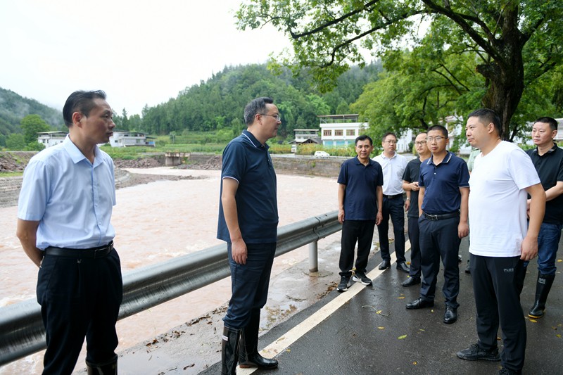 7月19日上午,县委副书记、县长谭青松到陈河镇督导防汛减灾工作。他强调,要深入学习贯彻习近平总书记系列重要讲话精神,坚持人民至上、生命至上,始终把人民群众的生命安全放在首位,扎实做好防汛减灾工作,确保实现安全度汛。