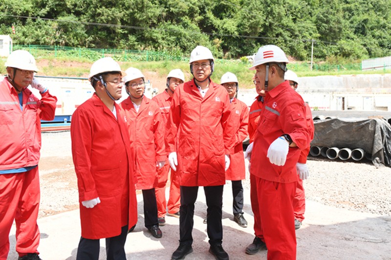 马12H井工厂钻井平台一片机械轰鸣、工人劳作的繁忙景象。来到该钻井平台,谭青松仔细询问井队钻井作业、施工安排、防暑避暑、安全生产等情况,向奋战在一线的工作人员表示慰问和感谢。他说,连续高温天气中,大家为钻井勘探施工付出了艰苦努力,充分展现了劳动者最光荣、最崇高、最伟大、最美丽的一面,大家辛苦了。