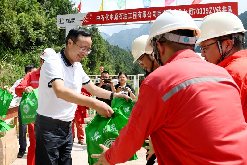 8月6日,县委副书记、县长谭青松带队到青峪镇姜家坝村,看望慰问中石化中原油田普光分公司通南巴项目部施工现场一线工作人员。