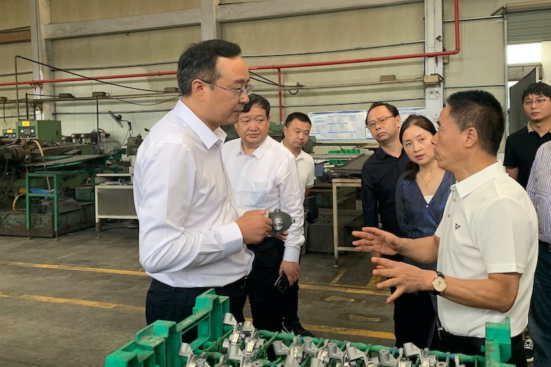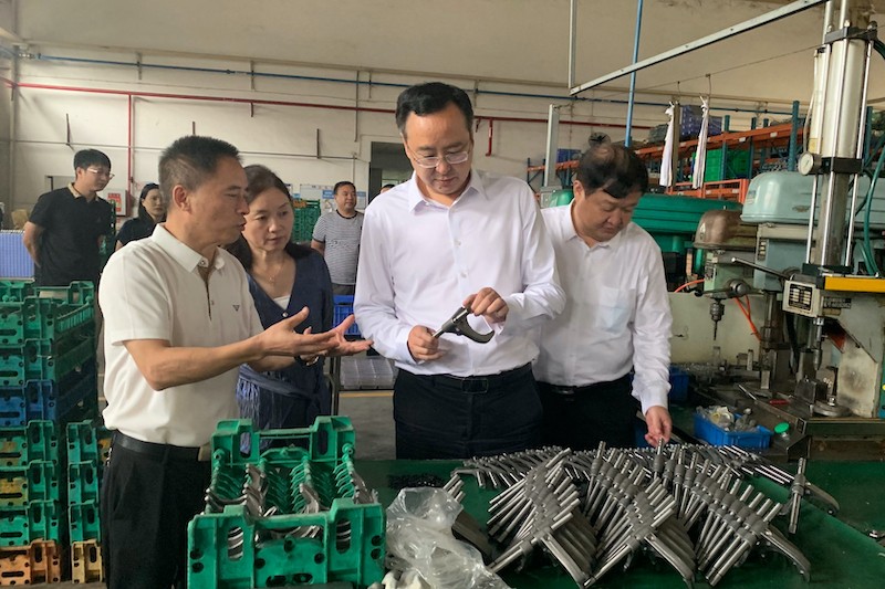 谭青松一行先后前往重庆市某食品公司、某养老服务公司、某机械公司等实地考察,并与企业负责人就意向合作项目进行深入交流。