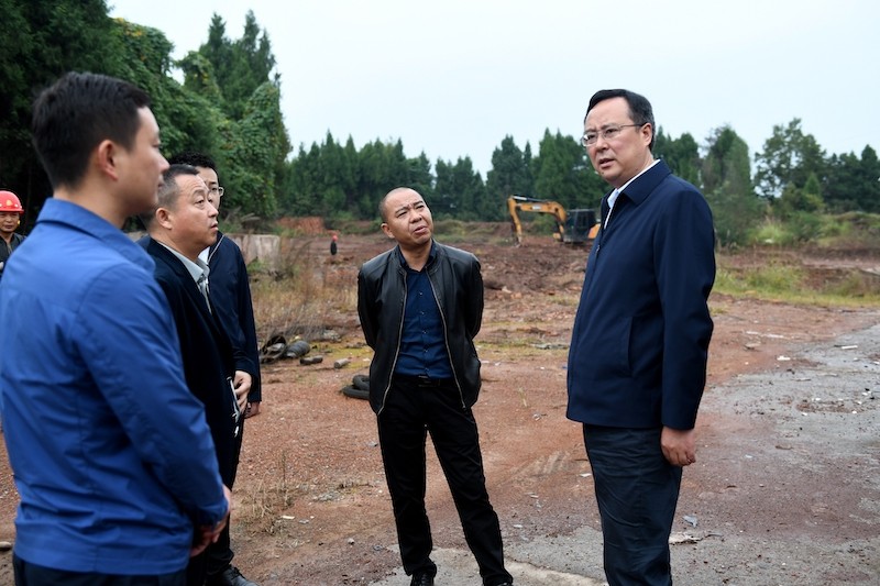 在广纳镇万轮村肉兔扩繁场项目建设现场,谭青松实地查看建设进度,了解项目建设中存在的困难问题。他指出,要进一步优化施工组织,倒排工期、挂图作战,强化施工安全、质量监管,在保证项目安全、质量的前提下,加快推进项目建设,确保按照既定时间节点完成建设任务。