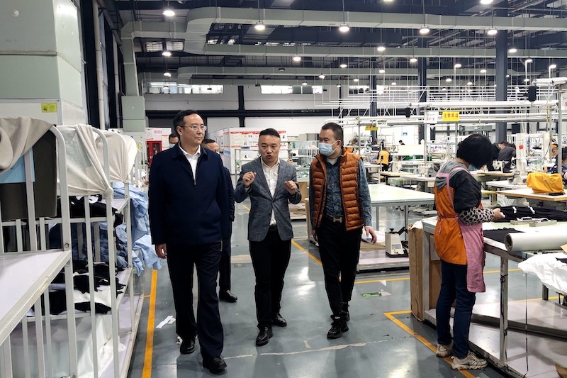 谭青松一行还前往四川某新能源有限公司和南充某时装有限公司实地考察,参观企业生产车间,与企业负责人座谈,洽谈合作事宜。