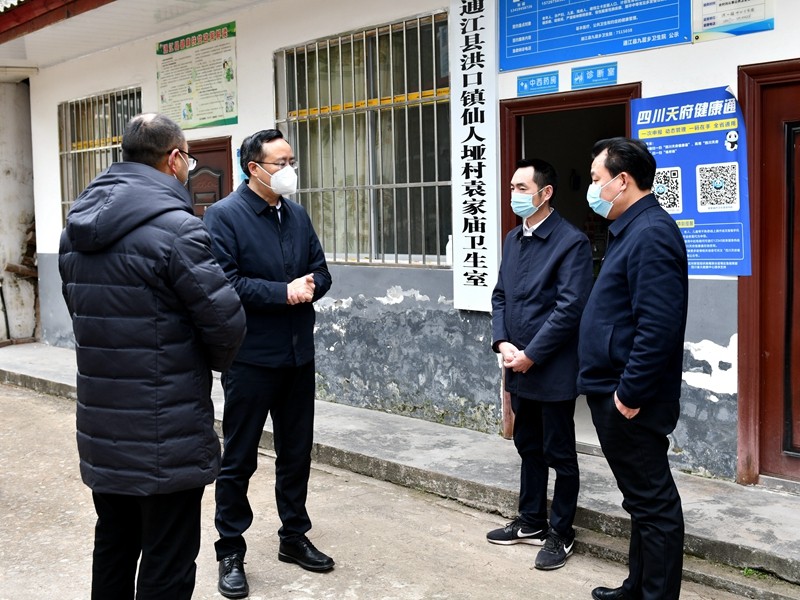 在沙溪镇卫生院、洪口镇卫生院斯波分院、洪口镇仙人垭村袁家庙卫生室,谭青松与医务人员深入交谈,详细了解乡镇卫生院急诊室和发热门诊每日接诊人数变化、医务人员配备、药品物资储备和村卫生室开展健康服务等情况,并向辛勤工作在一线的医务人员表示慰问和感谢。