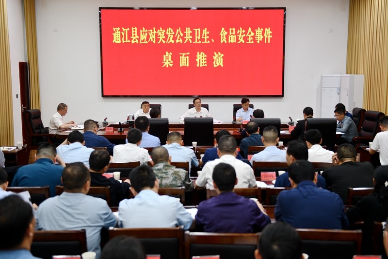 4月18日,我县开展突发公共卫生、食品安全事件桌面推演,县委副书记、县长谭青松出席并对桌面推演进行点评。