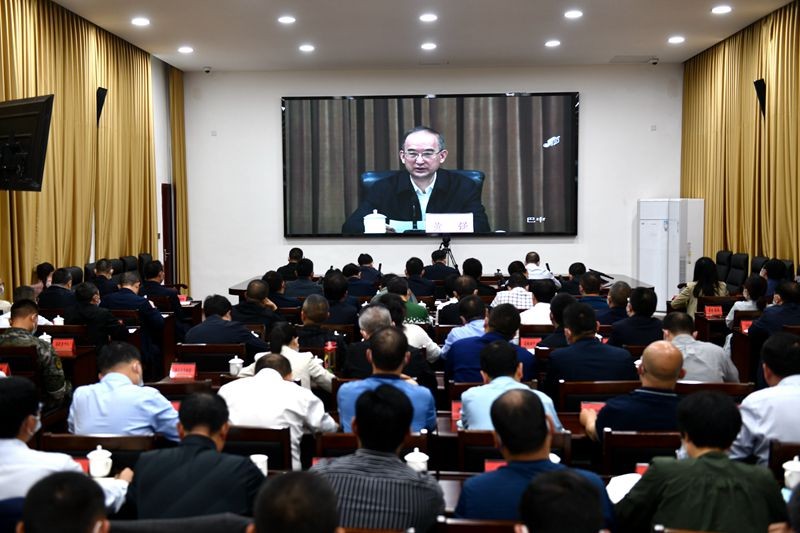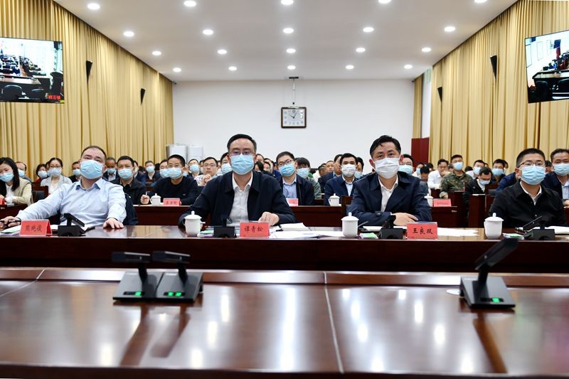 4月28日,全省安全生产、防汛抗旱、地质灾害防治工作电视电话会议召开,县委副书记、县长谭青松在通江分会场参加会议。