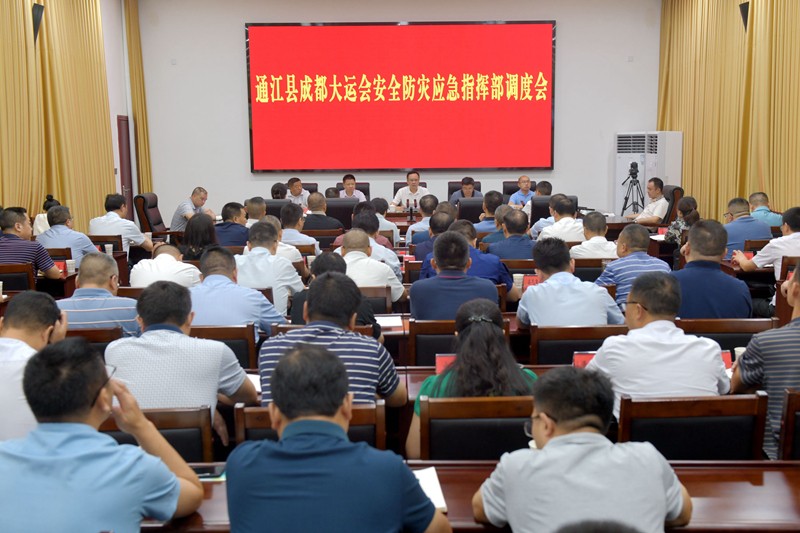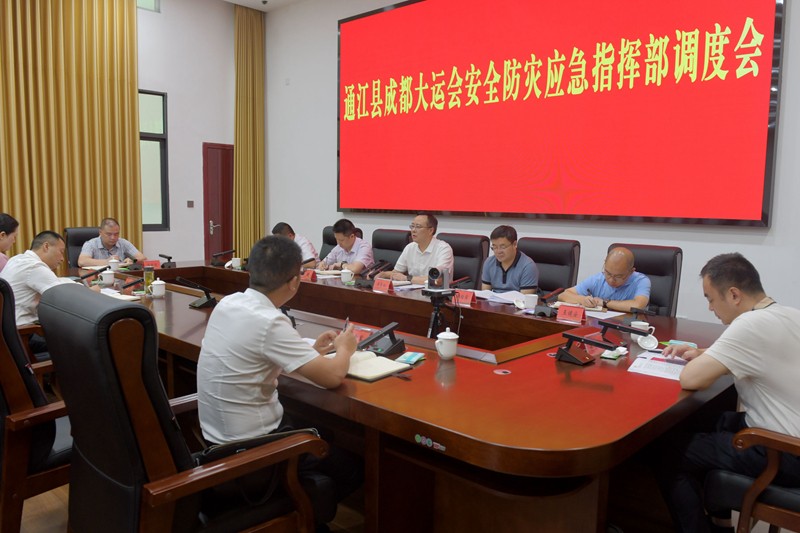7月24日,县委副书记、县长谭青松主持召开通江县成都大运会安全防灾应急指挥部视频调度会。