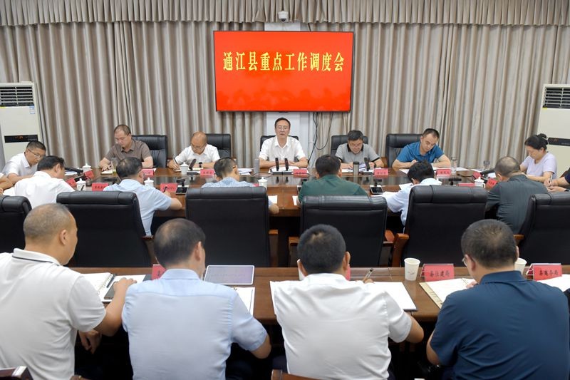 6月17日,县委副书记、县长谭青松主持召开重点工作调度会,分析研判当前形势和存在问题,安排部署下步工作。他强调,要进一步提高政治站位,压实责任,强化举措,充分认识各项工作的严峻性和紧迫性,全力推动通江经济社会高质量发展。