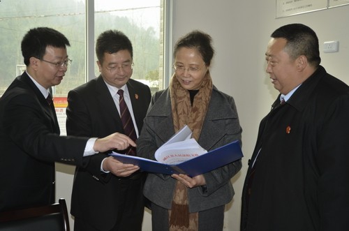1月18日下午,省高院王海萍院长在巴中市委政法委朱冬书记、中院王强院长、县委副书记马永、政法委王再生书记的陪同下,来到通江县杨柏法庭视察调研。