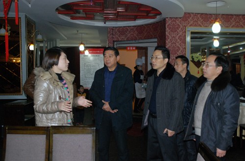 刘显卫来到负责代表就餐的聚膳房餐馆,认真查看餐厅、厨房、安全通道和消防设施,仔细了解食品准备情况和餐饮卫生条件。他要求,要切实保证食品供应安全卫生工作,为代表提供温馨舒适的就餐环境和安全、卫生、可口、实惠的食品。
