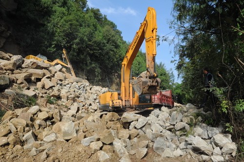 在双凤垭通村水泥路施工现场,挖掘机、压路机、运送砂石车往来穿梭,搅拌机隆隆轰鸣,工人们挥铲挖土、填土,忙个不停……,通村水泥路正以较快的速度加紧建设。刘显卫一路走来,详细查看公路施工进度、了解施工质量、叮嘱施工安全,他要求,要以高度的责任感,加快施工进度,确保施工质量,注意施工安全,把全村老百姓盼望已久的通村水泥路修成高质量的村民致富路、幸福路。