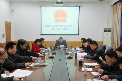 会议审定了县第十八届人大常委会第三次会议议题:听取和审议通江县人民政府关于三溪乡春在乡杨柏乡撤乡设镇的议案;听取和审议通江县人民政府关于《通江县春在乡场镇供水厂特许经营项目招商方案》及《公告》的议案;听取和审议《通江县人大常委会主任会议关于提请审议通江县人大常委会关于召开通江县第十八届人民代表大会第二次会议的决定(草案)的议案》;听取关于通江县第十八届人民代表大会第二次会议筹备工作情况报告;听取和审议《通江县人大常委会主任会议关于提请审议通江县人大常委会工作报告(草案)的议案》;听取和审议《通江县人大常委会主任会议关于提请审议通江县第十八届人民代表大会第二次会议主席团和秘书长名单(草案)的议案》;听取和审议《通江县人大常委会主任会议关于提请审议通江县第十八届人民代表大会第二次会议计划预算审查委员会和议案审查委员会名单(草案)的议案》;听取和审议《通江县人大常委会主任会议关于提请审议通江县第十八届人民代表大会第二次会议列席人员名单(草案)的议案》;听取和审议《通江县人大常委会主任会议关于提请审议通江县第十八届人民代表大会第二次会议邀请在主席台就座人员名单(草案)的议案》;听取通江县第十八届人大常委会代表资格审查委员会关于终止魏国、丁从康等二名同志县人大代表资格的报告;听取通江县第十八届人大常委会代表资格审查委员会关于确认县第十八届人民代表大会第二次会议代表实有人数的报告;人事任免及其他事项。