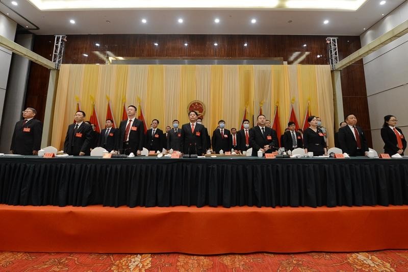 大会主席团常务主席孙辉、杨森儒、何奎、何清华、邹志善、莫小波、杨继松在主席台前排就座。
