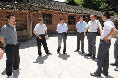 向全国一行首先深入毛浴乡朝阳村现场查看并详细询问了村社道路建设、安全饮水、部分贫困户家庭生产生活及村阵地建设情况。