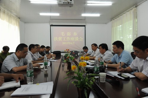 随后,在毛浴乡会议室召开了毛浴乡扶贫工作座谈会。向全国认真听取了毛浴乡党委政府主要负责人就乡情及朝阳村精准扶贫工作所作的详细工作汇报和其余参会人员分别就相关工作所作的具体工作汇报。