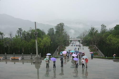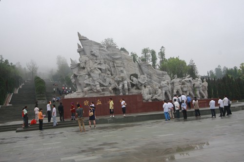 成都康威旅行社的30多名游客冒着倾盆大雨参观了川陕革命根据地红军烈士陵园AAAA级景区。在一排排整齐列队的烈士墓碑前,他们敬献鲜花,深深鞠躬;一张张弥足珍贵的历史照片让他们伫立默哀……