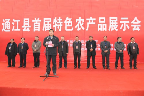 受县委书记赵万先委托,王军在开幕式上作了致辞并宣布我县首届特色农产品展示会开幕。他说,通江是一块绿色的宝地,特色农业资源丰富。近年来,县委、县政府坚持因地制宜,突出区域特色,积极加快“四化”同步进程,大力发展食用菌、茶叶、生态畜牧、干果、优质粮油、马铃薯、水产等特色产业,如今已初具规模、初见成效,成为带动农民增收致富、助推县域发展的支柱产业。通江正在朝着“打造西部特色农产品供应基地、建设西部绿色经济示范区”的目标快速推进。