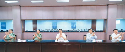 6月11日,中共中央总书记、国家主席、中央军委主席习近平在酒泉卫星发射中心观看神舟十号载人飞船发射。这是习近平在飞船发射成功后亲切接见参加这次任务的参研参试单位代表,向他们表示诚挚慰问。新华社记者 李学仁摄