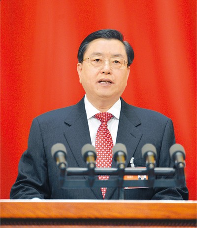 听取和审议全国人大常委会工作报告 张德江向大会报告工作