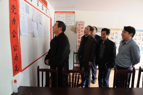在至诚镇钟山村,刘显卫认真查看了村党支部开展群众路线教育实践活动的情况,他翻阅了“三本台账”、观看了张贴在学习园地的党员心得体会文章、听取了工作汇报。他还实地详细查看询问了村小学的办公条件、学生学习生活、师资配备和村卫生站的建设以及村、社公路建设情况。
