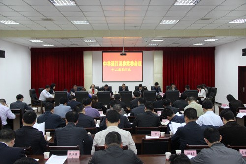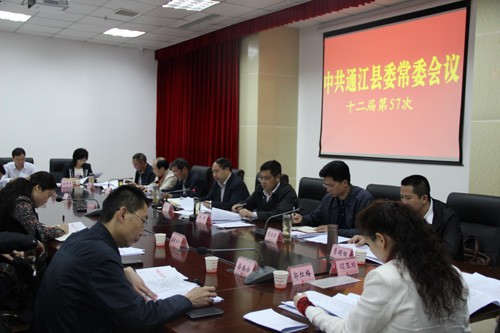 会议传达了全省县域经济工作会议、全省纪检监察工作视频会议、市委三届第107次常委会议精神和国家卫生计生委主任李斌5月11日至12日、省财政厅厅长王一宏5月16日、市委书记李刚5月15日至16日在通江调研指示精神;组织学习了中国共产党巴中市第三次代表大会报告;通报了通江县全面深化改革工作、依法治县工作推进情况;审定了《中共通江县人民政府党组关于审定开展通江通用机场项目前期工作的请示》、《中共通江县人力资源和社会保障局党组、中共通江县教育局委员会关于解决我县中小学代课教师问题实施方案的请示》、《中共通江县委领导班子党的群众路线教育实践活动专题民主生活会对照检查材料(讨论稿)》。