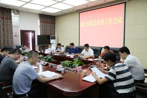 要明确依法治县攻坚性重点,切实把共建合力凝聚到突破发展上来。按照依法治县工作总体安排部署,今年要着力解决依法治县工作中的全局性、重大性、关键性问题,力争在五个方面出实效。要进一步完善各类会议制度和议事规则、落实决策制度、全面建立法律顾问制度、完善党务政务村务公开制度,以更新的举措推进依法执政。要进一步完善职责体系、公共服务体系、行政执法监督体系、行政权力规范公开运行体系,以更高的水平推进依法行政。要进一步深化司法管理体制改革、完善司法工作规范、全面推行“阳光司法”、深入推进平安通江建设活动、强化司法为民,以更大的力度推进公正司法。要进一步改进社会治理方式,依法解决群众诉求,加强公共安全管理和法律服务市场监管,以更高的标准推进社会治理。要坚持领导干部带头,狠抓法治宣传,落实“谁执法谁普法”责任,健全学法制度,强化法治文化,逗硬考核督查,以以更大的成效推进全民学法用法。