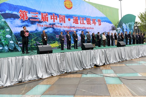 巴山新雨后,银耳朵朵香。10月17日上午9时,第三届中国·通江银耳节在高明新区石牛广场隆重开幕。省供销社党组书记、主任刘国成,市委常委侯中文,国家食用菌产业技术体系首席科学家张金霞,省文化厅副厅长王琼,中国食用菌协会常务副会长高茂林,省农业厅副巡视员冯亮,省旅游局副巡视员、省旅游协会执行副会长谢海银,省质监局副总工程师姜德玉,中央财经大学文化经济研究院院长魏鹏举,北京交通大学经济管理学院旅游管理系教授王衍用,国际生态发展联盟全球执行理事长黄海峰,欧盟地区委员会原秘书长、北京大学汇丰商学院访问教授格哈德·斯塔尔,吉林农业大学教授姚方杰,中航工业集团四川航空工业局副局长黎新,桑德集团总裁张景志,市人大常委会副主任郭宝渝,市政协副主席蒋兴权,县委书记赵万先,县委副书记、县长王军,县人大常委会主任刘显卫,县政协主席赵洪斌出席开幕式。