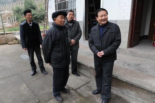 在民胜镇鹦鸽嘴村五社老基层干部、贫困户闫仕森家中,范申华认真查看了他家正在维修的房屋并和他亲切交谈,详细询问了他家的生产、生活等情况,他说:“作为基层干部,感谢你过去所做的贡献,希望你老骥伏枥,继续发挥余热,首先自己摆脱贫困,再和乡亲们一起走上共同富裕的道路。”