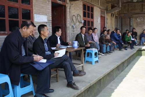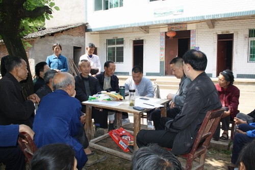 “你们对村里的发展有什么愿望和要求?”村民们纷纷发言:“过去我们这条村道路最早是1976年修通的,现在却成了全乡最烂的路,希望修条水泥路。”“我们村病险塘库有点多,想上级整治整治。”“我们虽然通了电,但是电压弱,电灯都只是亮个小红火火”……听取了村民发言, 驻村工作队详细为村民讲了为村里制定的发展规划、帮扶措施等,村民们聚精会神的聆听。