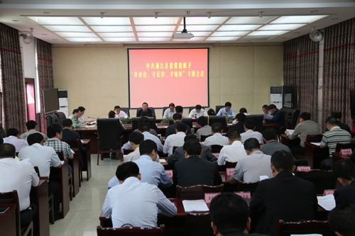 要始终突出履职尽责,切实强化责任担当。“讲政治、守纪律、守规矩”是党对领导干部的一贯要求,敢不敢担当、能不能担当、善不善担当,既考验领导干部的政治素养、也考验领导干部的能力素质和行政水平。当前,通江既面临持续加大的经济下行压力,又面临改革发展、扶贫攻坚、稳定就业、民生改善、奔康致富等系列重大发展任务,困难多、矛盾多、问题多。越是这种时候,越需要各级党组织和领导干部爱岗知责、在岗思责、守岗尽责,以等不得的事业心、慢不得的责任心、拖不得的进取心统一意志、坚定决心、苦干实干,推动“四个全面”在通江生动实践,推动上级决策部署在通江落地生根。在改革发展方面,要围绕同步小康的目标,主动适应新常态,专注发展定力,正确处理改革、发展与稳定的关系,以破釜沉舟的勇气决心,直面各种困难和矛盾,扎实推进行政审批制度、农村产权制度、社会治理、民生事业等各项改革,打破利益壁垒,激活发展动力。在城乡统筹方面,要以全县大局为重,严格执行县委政府关于城乡统筹方面的决策部署,尊重规划、坚持原则,绝不允许官商勾结、损公利己,对于城镇建设中的一切违法违规行为必须予以坚决打击。在依法治理方面,要强化法治意识,带头尊崇法纪、敬畏法律、厉行法治,带头用法律的意识思考问题,用法治的手段解决问题,加强法治宣传和法治监督,推进依法执政、依法行政、公正司法、社会法治。在为民服务方面,要牢固树立宗旨意识,时刻把群众的冷暖放在心上,始终站在群众的立场想问题、办事情,积极回应群众关切,绝不允许与民争利,要严惩侵占和损害群众利益的人和事,让党组织和党员干部真正成为带领群众战风险、渡难关的主心骨。