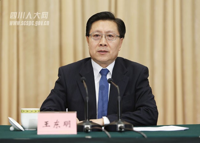王东明指出,在新的历史时期,坚持和发展人民代表大会制度,对于坚定不移走中国特色社会主义政治道路,深入推进“四个全面”战略布局,实现“两个一百年”奋斗目标,具有十分重要的作用。当前,我省已经进入全面建成小康社会决胜阶段,改革发展稳定各方面工作头绪多任务重,各地各部门各方面都要按照省委统一部署,主动融入全省大局,共同为实现既定目标努力奋斗。全省各级人大及其常委会要坚持围绕中心、服务大局,牢牢把握全省工作主题主线,自觉投身“四个全面”战略布局四川实践,紧紧围绕经济转型升级、全面创新改革、扩大开放合作、法治四川建设、保障改善民生、推进脱贫攻坚、灾后恢复重建、维护社会和谐稳定等重点任务,依法履行立法、监督、讨论决定重大事项、人事任免等重要职权,积极发挥地方国家权力机关作用,找准依法履职的切入点和着力点,不断提高服务治蜀兴川事业发展的效能和水平。一要加强和改进地方立法工作,围绕全面创新改革驱动转型发展,深化国资国企、农业农村等重点领域改革,推进脱贫攻坚和民生改善等方面加强立法修法,不断提高立法质量,进一步营造有利于改革发展的法治环境。二要加强和改进监督工作,紧紧围绕“一府两院”依法全面履行职能、法律法规实施等方面情况开展监督,推动政府依法行政、“两院”公正司法,推动省委重大决策部署贯彻落实。三要加强和改进决定重大事项及选举任免工作,进一步促进决策科学化民主化法治化。四要加强和改进代表工作,进一步发挥人大代表反映民意、参与决策、模范带动的作用。