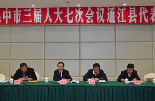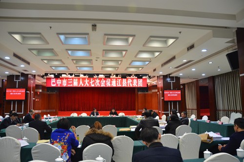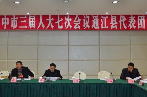 1月19日,出席市第三届人民代表大会第七次会议的通江县代表团全体代表认真审查了人大、法院、检察院工作报告,继续审查了政府、计划、财政工作报告和“十三五”规划纲要。市、县领导范申华、郭宝渝、袁闻聪、黄鹏、王军、刘显卫参加讨论。