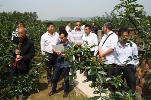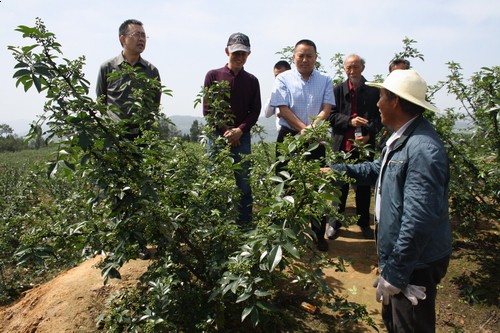 在铁佛镇小岭子村,大家参观考察了正在如火如荼建设中的新村建设和红心猕猴桃种植基地。在三溪乡张家山村,数百亩青花椒长势旺盛,硕果累累,一片丰收景象,大家现场参观了青花椒种植基地,认真听取了该村党支部书记和种植大户的情况介绍以及技术人员对种植技术的详细讲解。随后,在三溪乡会议室,观看了三溪乡青花椒种植影像资料,学习了该乡青花椒种植、管理、加工、销售等系统的经验介绍。