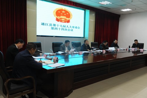 会议听取和审议了《通江县人民政府关于通江县乡村旅游示范带建设项目购买服务资金纳入县财政年度预算的议案》;听取和审议了《通江县人大常委会主任会议关于提请审议通江县人大常委会关于召开通江县第十八届人民代表大会第一次会议的决定(草案)的议案》。