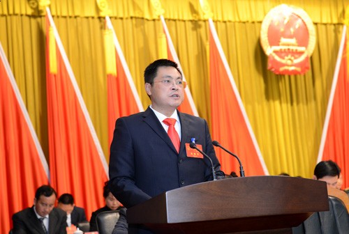 在热烈的掌声中,王军代表县十七届人民政府向大会作政府工作报告。